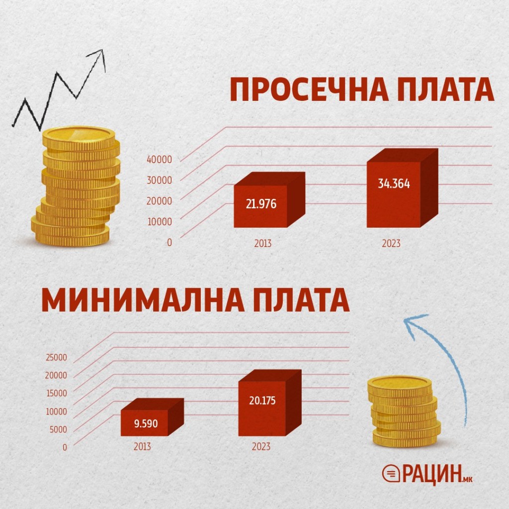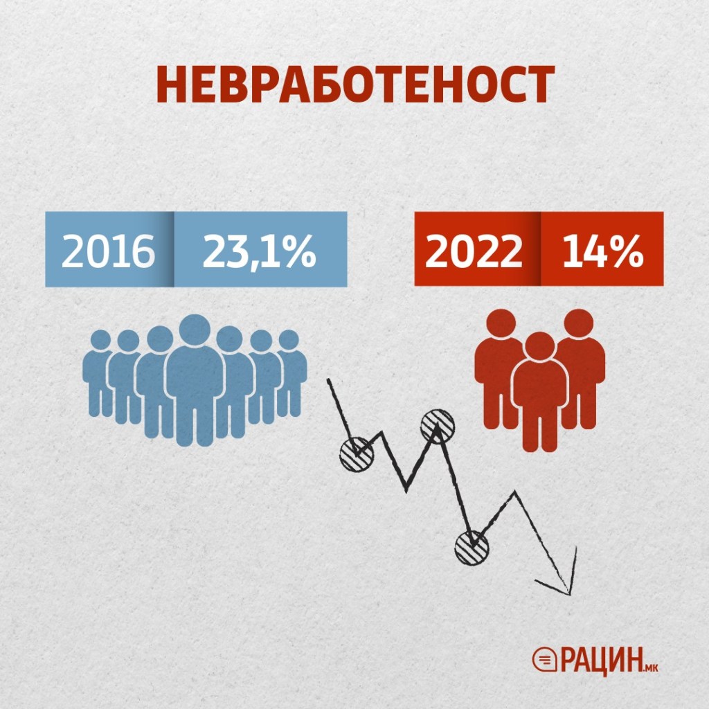 За таа цел графичките дизајнери за Рацин.мк подготвија еден график кој на илустративен начин, низ споредбени податоци, доволно јасно говори за позитивните трендови во повеќе области.