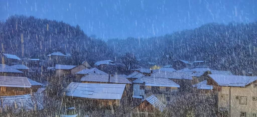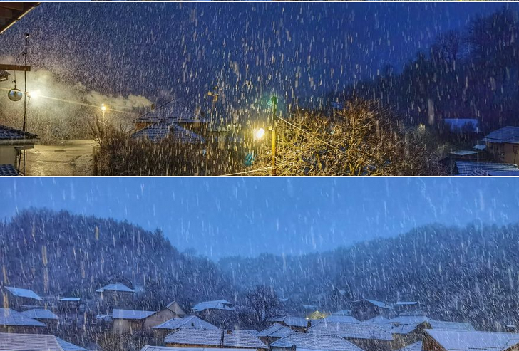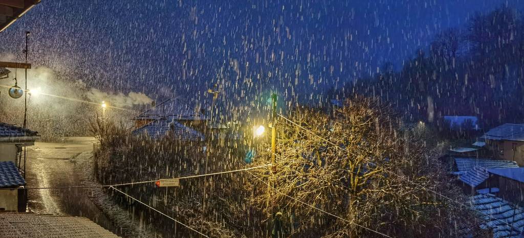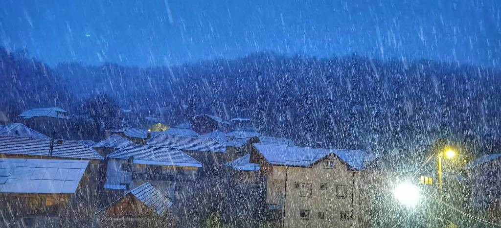 Снег падна вечерва во охридското село Куратица, кое се наоѓа на околу 1.100м надморска височина.