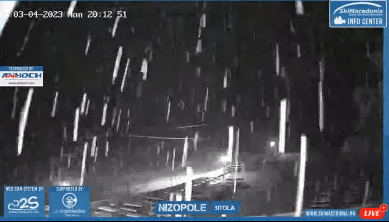 – Под влијание на изразена циклонска активност со центар над Медитеранот, во следните часови, како и во текот на претстојната ноќ врнежите во јужните и од југоисточните предели од Македонија ќе бидат проследени со грмежи. На планините и на некои повисоки места во западните делови врнежите веќе преминаа во снег и започна да се формира нова снежна покривка. Како што може да се види од камерите на skimacedonia снежна покривка е формирана низ скијачките центри во Македонија, Попова Шапка, Маврово, Крушево, Нижеполе, Пелистер, Пониква…