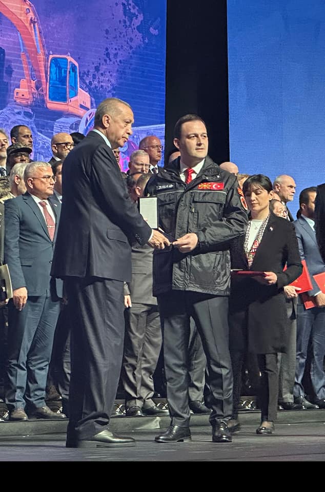 Во Националниот конгресен и културен центар во Бештепе турскиот највисок државен медал за пожртвуваност во име на државата го прими заменик директорот на Дирекцијата за заштита и спасување, Зулфиќар Зејнулаи.