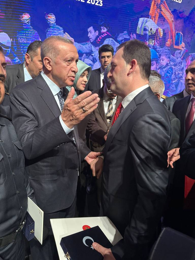 Ердоган, пред присутните во салата, се заблагодари и им се придружи на локалните и странските тимови за потрага и спасување, кои учествуваа во потрагата и спасувањето на настраданите од земјотресите во Кахраманмараш и Хатај.