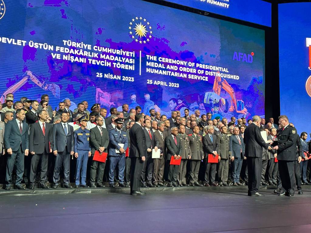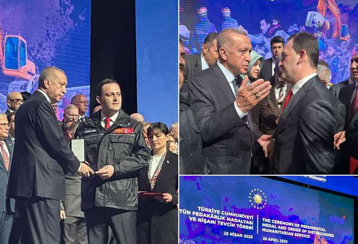 Претседателот на Турција, Реџеп Тајип Ердоган денеска им додели медал на македонските спасувачи кои учествуваа во потрагата и спасувањето на настраданите од катастрофалниот земјотрес што се случи на почетокот на февруари во Кахраманмараш и Хатај.