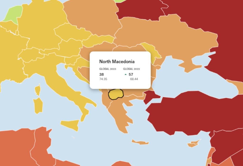 Рангирањето на земјите според слободата на медиумите во 2023 година покажува дека земјава, со заземање на 38. позиција од вкупно 180, е лидер по слободни медиуми во однос на земјите на Балканот.