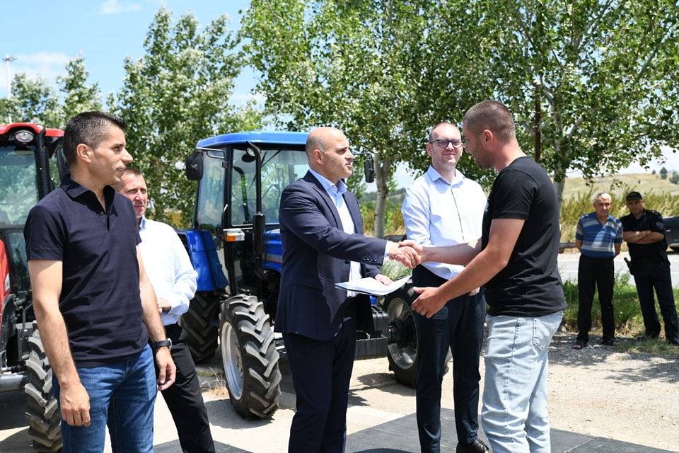 Премиерот Димитар Ковачевски, заедно со министерот за земјоделство, шумарство и водостопанство Љупчо Николовски и директорот на Платежната агенција, Никица Бачовски денеска во Свети Николе ги доделија решенијата за набавка на трактори на 60 земјоделци од овој крај.