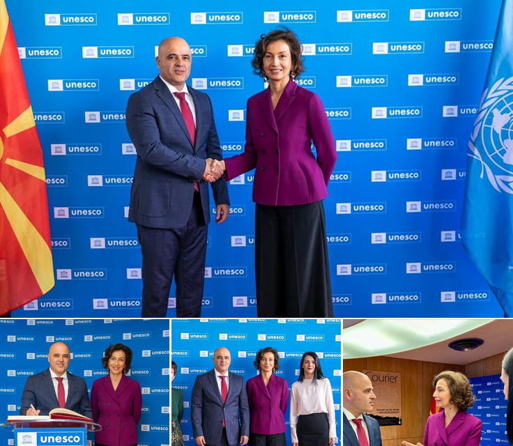 Претседателот на Владата, Ковачевски, придружуван од министерката за култура, Бисера Костадиновска Стојчевска, имаше средба со генералната директорка на УНЕСКО, Азуле.