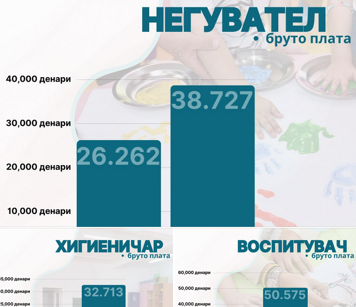 (Фото) За колку се зголемени платите на вработените во градинките 9Nov 2023Add a comment Од 2019 година до денес зголемување на платите во градинките Воспитувачите за 54% поголема плата! Негувателите за 47% поголема плата! Хигиеничарите за 64% поголема плата! СподелиTweetLike Loading...