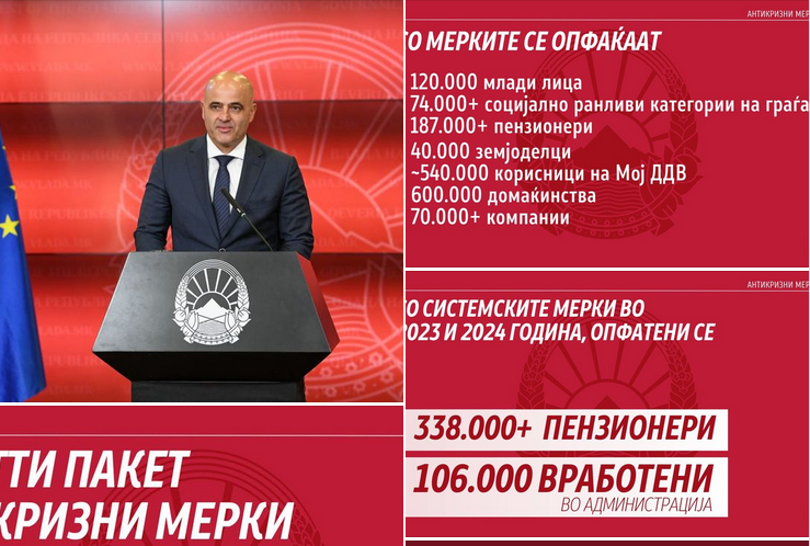 Со деветтиот пакет антикризни мерки во вредност од 662 милиони евра, обезбедуваме социјална сигурност, ликвидност на компаниите, закрепнување и развој на економијата. 26 мерки директно насочени кон најранливите категории граѓани, младите, пензионерите,кон компаниите: