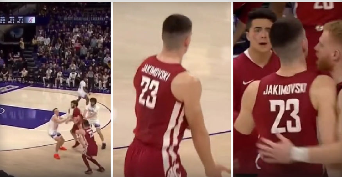 Екипата на Вашингтон Стејт, каде што настапува македонскиот кошаркар Андреј Јакимовски ноќва впиша голема победа во НЦАА лигата, откако по продолжението го совлада градскиот ривал Вашингтон (90-87).