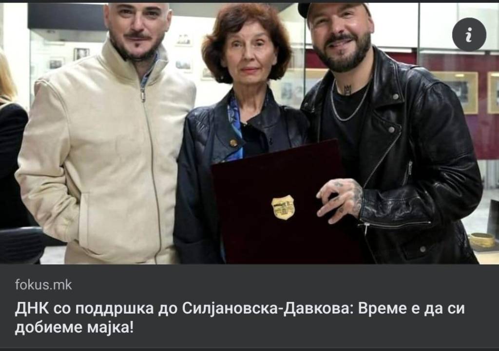 Членовите на групата ДНК кои често настапуваат на партиските собири на ДПМНЕ, во својот веќе препознатлив стил, ја прегрнаа единствената кандидатка за претседател на Мицкоски, нарекувајќи ја „мајка“: „Време е да добиеме “Мајка”