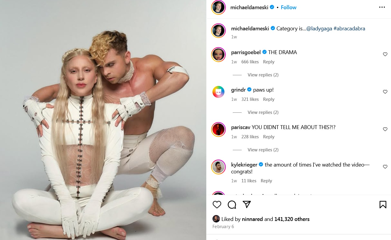 Австралискиот танчер со македонско потекло, Мајкл Дамески, го оствари својот сонот, настапувајќи покрај светската музичка ѕвезда Лејди Гага во нејзиниот нов видео спот за песната „Abracadabra“. Дамески, кој веќе долго време е дел од светската танцова сцена, ја сподели возбудата со своите следбеници на Instagram, објавувајќи видео и фотографија со Лејди Гага.